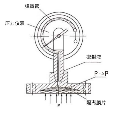 為了擴(kuò)大各種通用型壓力儀表的使用范圍,能適用于測量強(qiáng)腐蝕、高溫、高粘度、易結(jié)晶、易凝固和有固體浮游物 介質(zhì)的壓力,以及對某些測量介質(zhì)不能直接進(jìn)入通用型壓力儀表內(nèi)和便于清洗防止沉淀物質(zhì)積聚的場合的壓力檢測時(shí), 必須采用由隔膜隔離器與通用型壓力儀表組成一個(gè)系統(tǒng)的隔膜表。