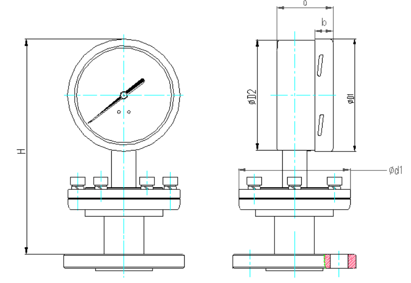 法蘭連接尺寸根據(jù)用戶要求的標(biāo)準(zhǔn)規(guī)格確定:C-法蘭厚度,d-密 封面直徑,D-法蘭外徑,K-螺栓孔中心圓直徑,n-螺栓孔數(shù)量, L-螺栓孔直徑