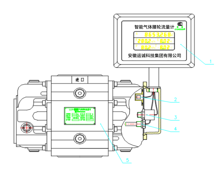 1.氣體腰輪流量計(jì) 2.流量傳感器 3.壓力傳感器 4.溫度傳感器 5.智能流量積算儀