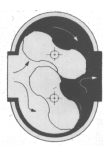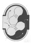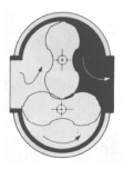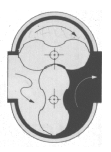 | 氣體進(jìn)入 儀表上游腔體 | 氣體推動 腰輪轉(zhuǎn)動 | 氣體經(jīng)過計(jì)量 腔排出計(jì)量腔 | 每對轉(zhuǎn)子旋轉(zhuǎn)一周 排出等體積氣體4次 |