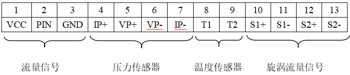 | 傳感器通道2 漩渦流量信號 | S2 | + |