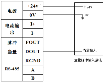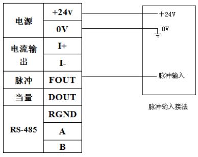 流量計(jì)需要流量脈沖信號輸出時(shí),需外電源供電,供電電壓+24VDC。