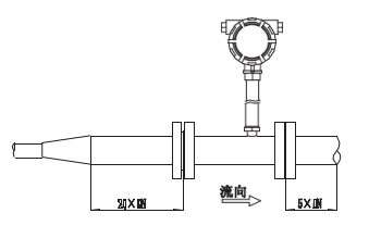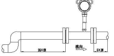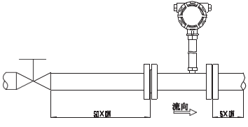 渦輪流量計對管道內(nèi)流速分布畸變及旋轉(zhuǎn)流是敏感的,進(jìn)入傳感器應(yīng)為充分發(fā)展湍流,因此要根據(jù)傳感器上游側(cè)阻流件 類型配備必要的直管段或整流器,要求入口段和出口段直管段長度。