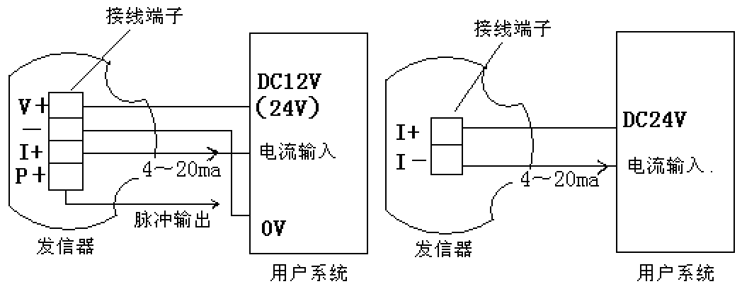 四線制(正電源線、4~20mA電流線、脈沖信號線、電源地線)