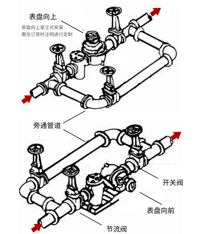 可立式安裝(請在訂貨時注明要求立式安裝,且一般DN200口徑以下)。